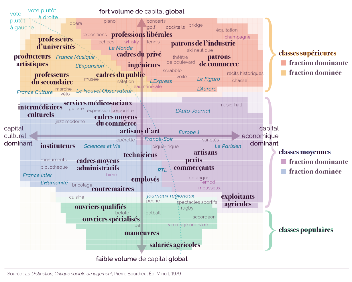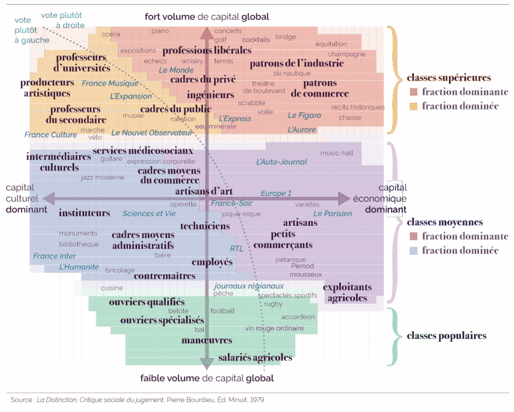 La position d’un individu ou d’une classe dans l’espace social est définie par trois éléments que Bourdieu classe par ordre d’importance :